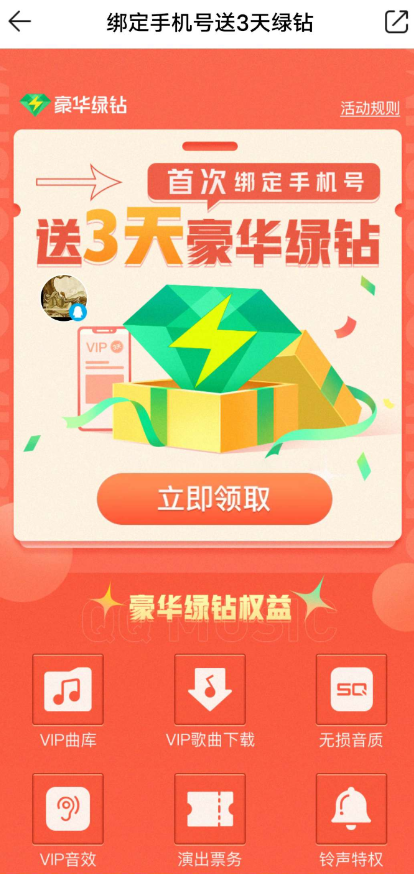 首页 > 活动线报 > 绑定手机号领取3天QQ音乐会员