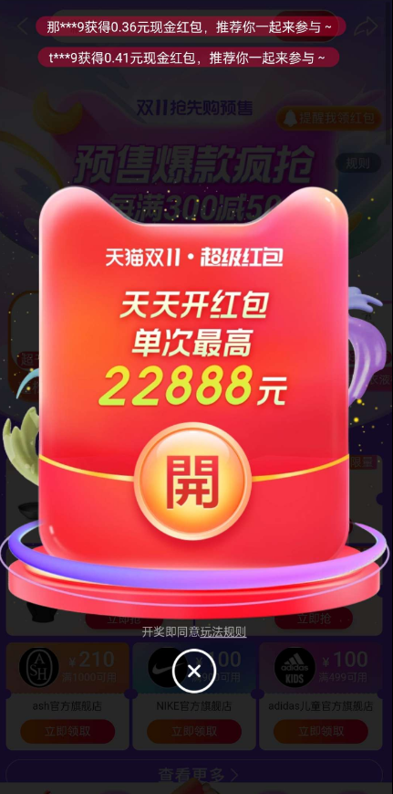 【活动规则】每天领双十一红包