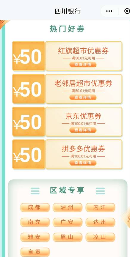 50撸100e卡,定位到四川成都,打开云闪付搜索四川银行,点1图中我要参与