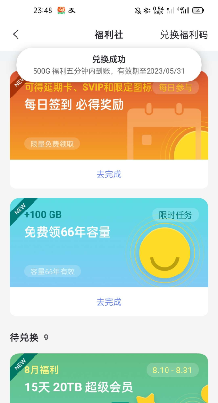 【参与方式】阿里云盘APP->我的->福利社->右上角输入兑换码“阿里云盘两周年”领500GB容量