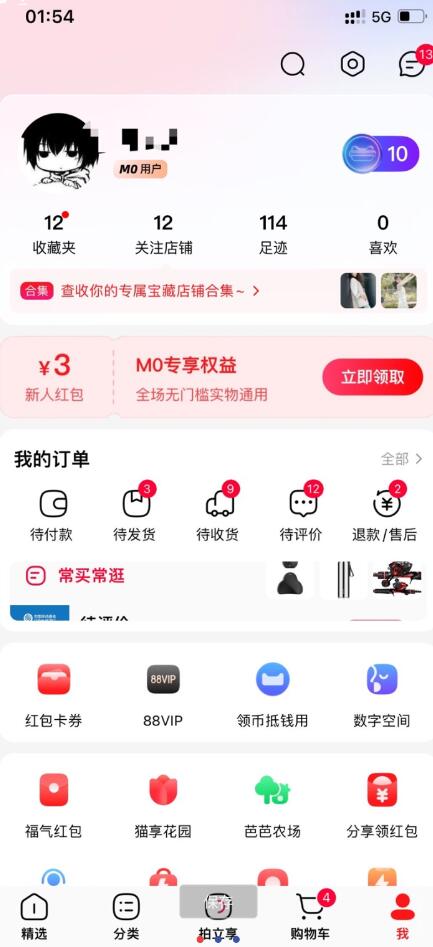 【参与方式】手机天猫app→我→MO专享权益,领取3元新人红包