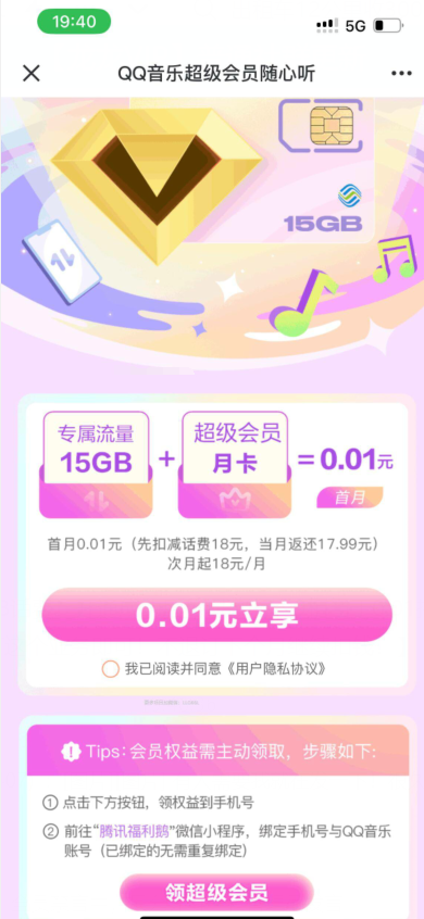 0.01撸QQ音乐会员入口: