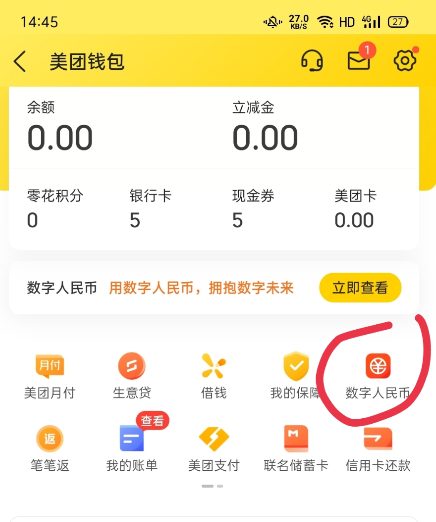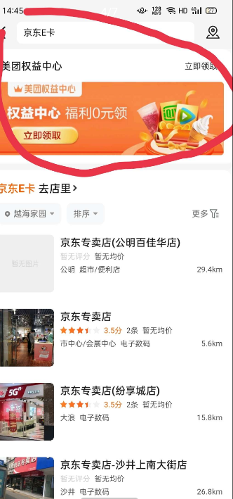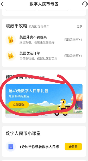 看图操作,兄弟们,领完数字RMB后就在美团搜索京东e卡