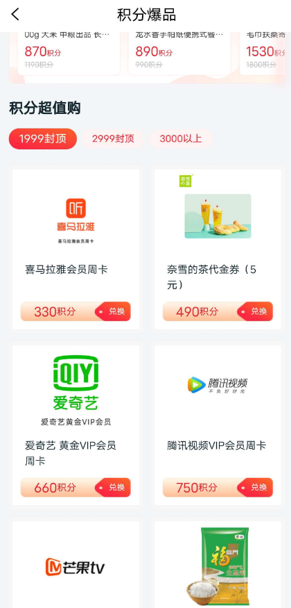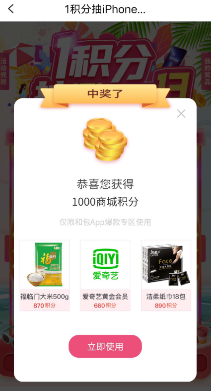 和包抽奖看脸基本上都是1000积分直接去换会员7天