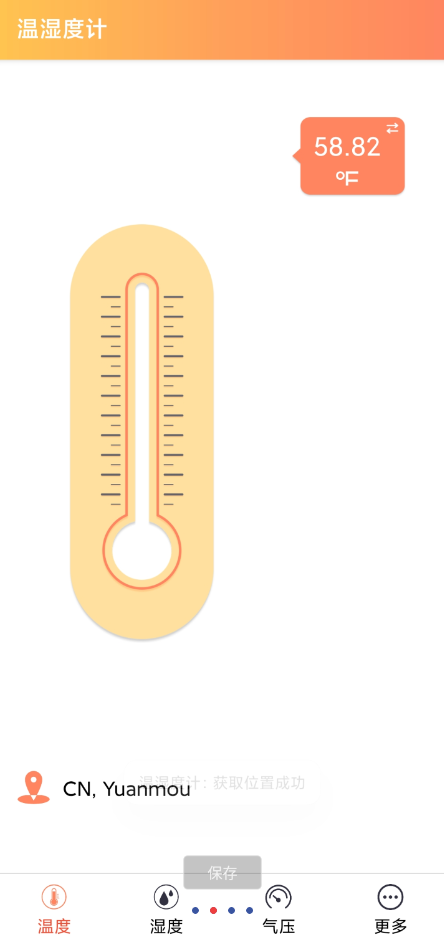 内容:温湿度计是一款可以测量实时温度和湿度的APP,可以让你的手机变身为温湿度计,让你随时随地了解当前天气情况。