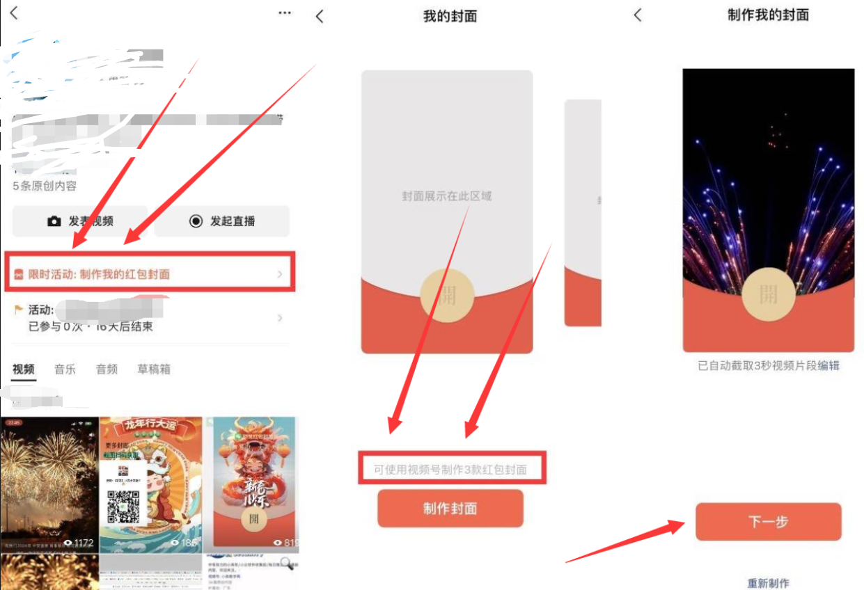 打开我们的视频号主页,下图标记的:限时活动:制作我的红包封面。