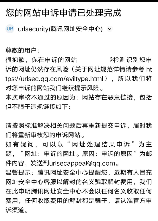 首页 > 技术教程 > 解除申诉失败爆红域名教程