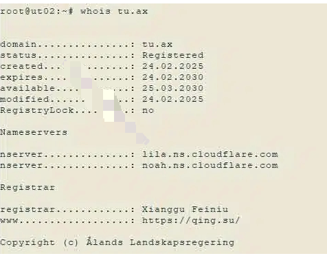 以下是示例域名 tu.ax 的WHOIS信息截图,可以看到清晰显示注册商官网链接,为网站带来可信背书。