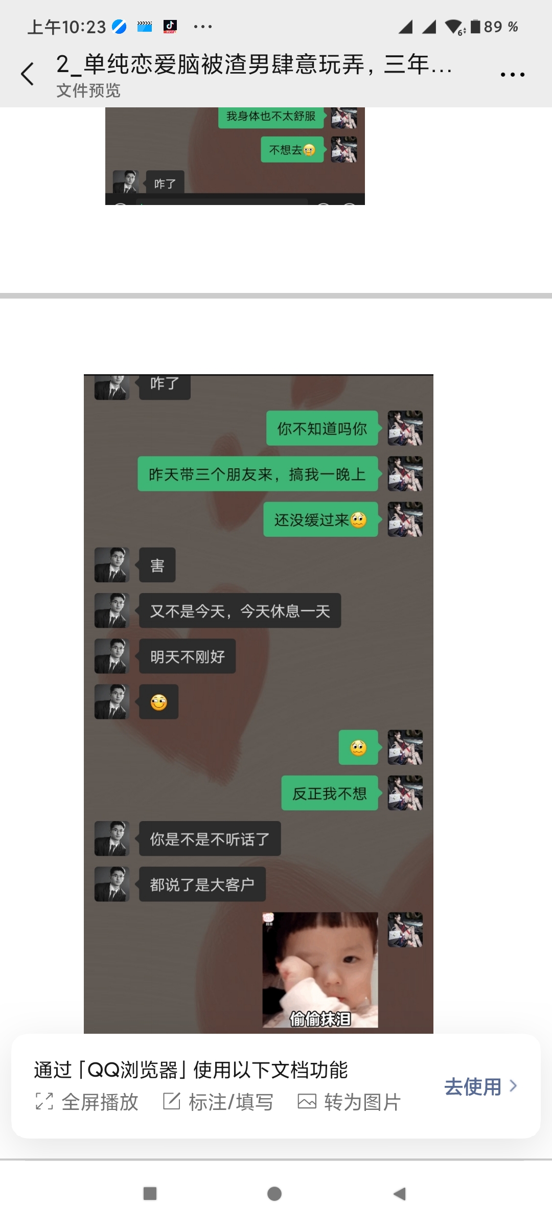 炸裂!让女朋友一晚上陪15个客户!男朋友升职加薪!最后无情抛弃!100页的聊天记录!