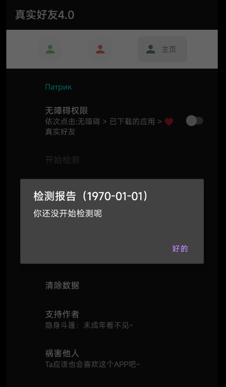 注意:如果运行几秒后暂停了检测,在设置中,把微信强行停止,重新打开微信再使用APP。如果还是不行,不嫌麻烦的话,也可以在自动暂停了检测后重新再点击检测,部分机型检测十几个好友之后就自动暂停。个别机型使用存在的小问题,等待作者优化。(已优化,请查看注意事项栏)