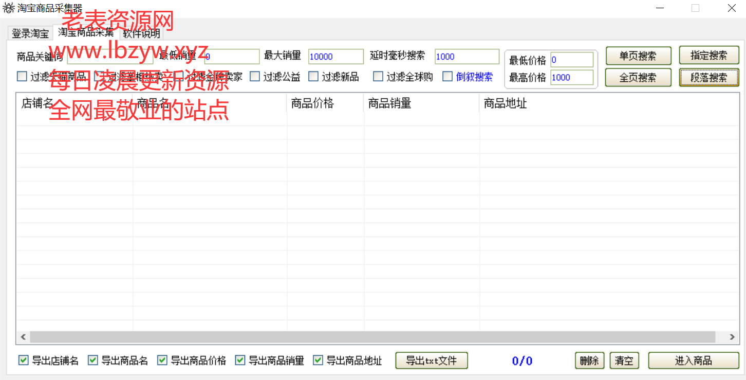 全页搜索:爬取商品的所有页面从第一页爬到尾页,开启倒叙爬取,会从商品末尾页爬到第一页。