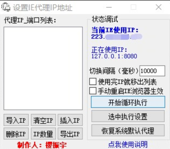 【软件介绍】小提示:127.0.0.1:8080 是IE的默认地址!本软件就是针对浏览器的设置代理IP的,并不是针对其它软件进程的,这个软件没多少东西看的懂的就用,不懂我也不多解释!