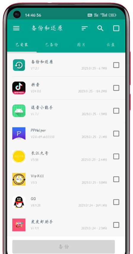 【资源介绍】:1.支持备份所有你想备份的数据,包括软件使用的相关数据,你所玩的游戏进度不会进行数据丢失,你所有的聊天记录都可以完美的保存。