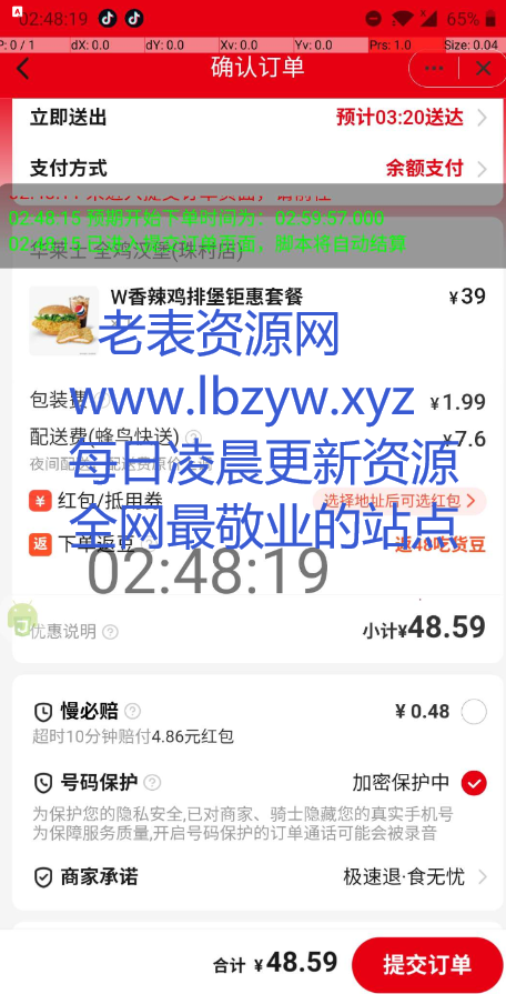 4.提交订单成功后再次确认下单时间后再付款,如当场免单名额为10000名,提交订单锁定时间约为5秒内,20000名额约为10秒内,以此类推即可