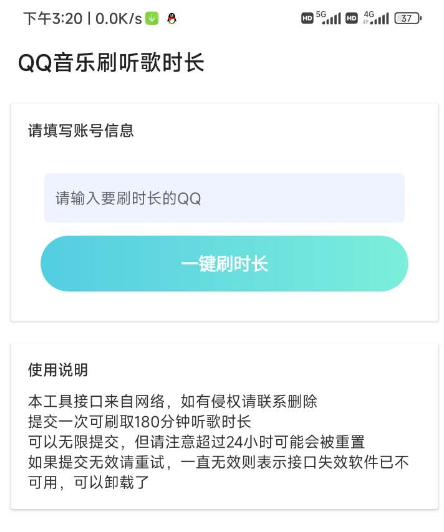 【软件介绍】:输入QQ账号即可一键刷听歌时长,排行榜可见,无需密码