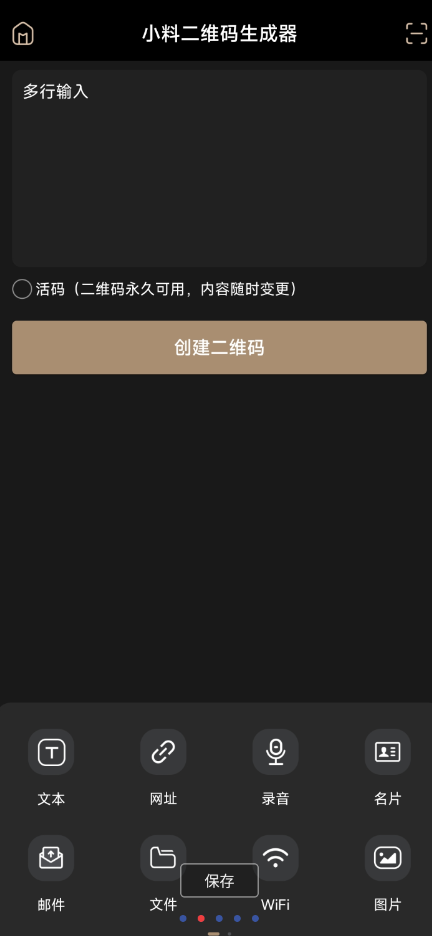 首页 > 软件仓库 > 小料二维码生成器是一款能够一键简单生成二维码的制作工具。文字、语音、视频、图片都可以一键转化为二维码