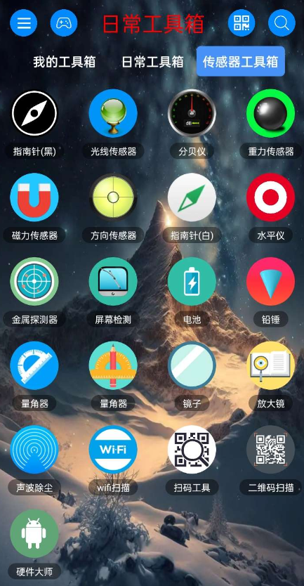 【软件介绍】:太极工具箱app是一款实用的小工具,纯绿色,无任何广告,包含指南针,光线传感器,分贝仪,重力传感器,磁力传感器,方向传感器,水平仪,金属探测器等,日常生活中都能用上的工具,长按对应的图标,可以拖动排序常用工具。