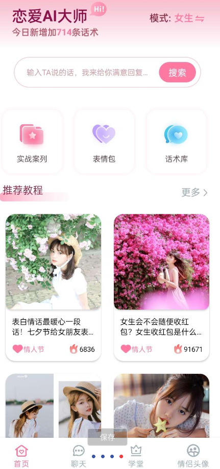 恋爱ai大师 内置了10w+恋爱技巧可以免费阅读,在短时间可以提高情商幽默感