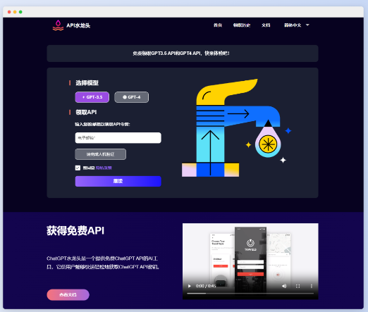 ChatGPT水龙头是一个提供免费 ChatGPT4 API和GPT3.5 API 的AI工具,能够快速轻松地获取 ChatGPT API 密钥。
