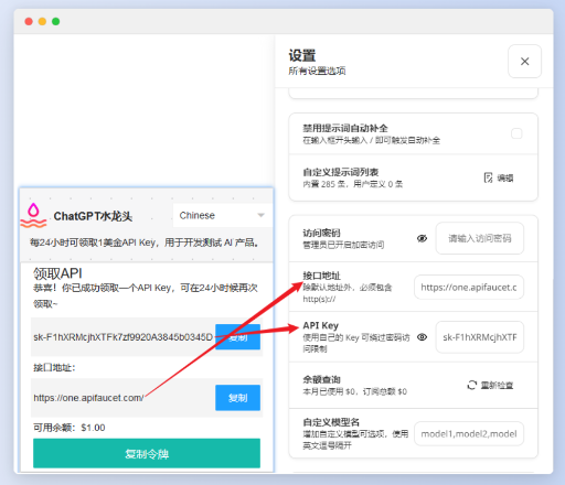 找个能输入api的镜像网站(无广告,只是示例:ab.nextweb.fun)使用。把看到API密钥和接口地址替换一下就可以用了。(图4)
