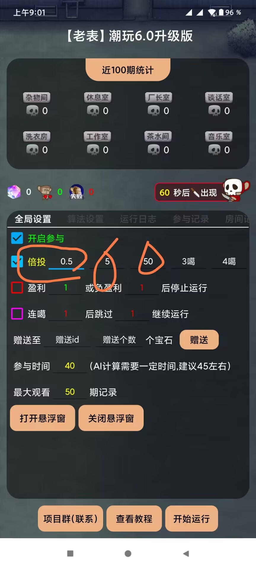 倍投设置:选择ai投资 正常0.5宝石下注 嘎一次 直接5个宝石 连续嘎两次 直接下注50个宝石 三连嘎机率很低的!