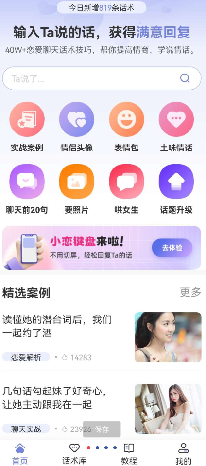 恋小帮 海量的交友的搭讪技巧和多种的手机语言话术的方式