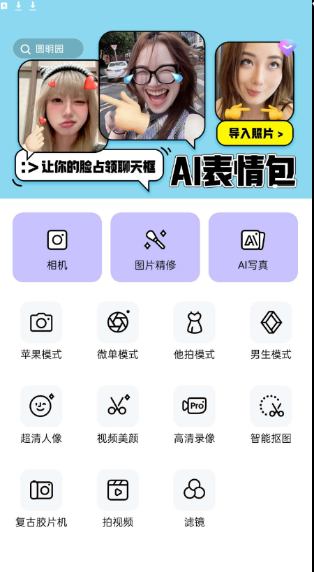 以下是它的主要特点:功能强大:提供图片精修、视频美颜、AI绘画、复古胶片相机等多种拍照模式。