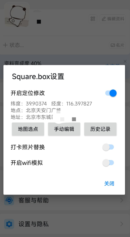 在主页我的头像处 长按头像可修改位置