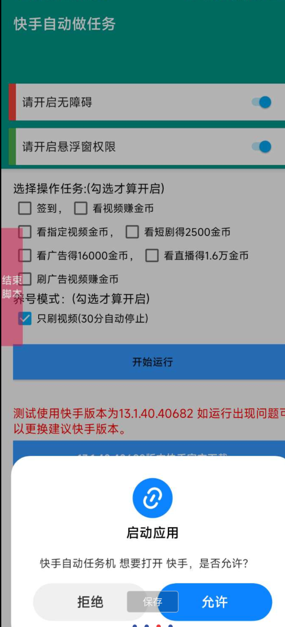 首页 > 软件仓库 > 快手自动任务机 可签到、看视频赚钱、看广告、看直播、刷视频养号,勾选任务后按顺序进行,使用操作简单
