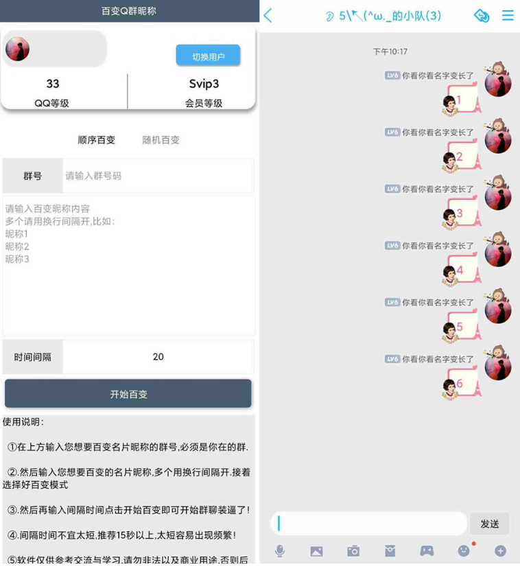 百变扣群昵称 内置自动改名片/群昵称 同学群装X