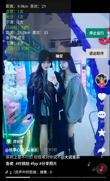 软件根据自定义设置的距离与对方作品点赞点次数,去关注与点赞