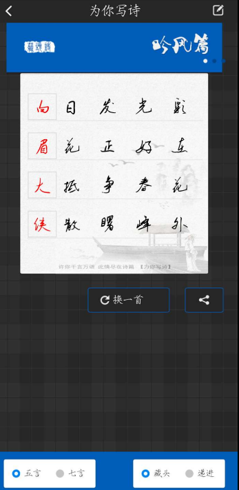 藏头诗是一款即可用作表白,也可用作祝福的藏头诗制作软件,支持五言、七言诗词的生成。