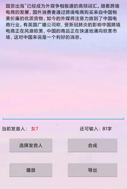 软件简介流畅!可以选择导出合成的语音文件!超级强大!用了都说好!