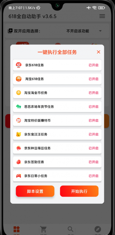 如果淘宝的618任务只有几百喵币,请先检查是否安装了其他辅助。目前已知淘宝会检测无障碍服务,正在运行的辅助里有使用无障碍服务的都有可能影响喵币收益(本脚本己经过特殊处理不会被检测到!),如果不想删除其他辅助,可以试试双开淘宝,用新开的淘宝登录帐号运行脚本,或者可以在应用列表中“强制停止”其他辅助(杀掉后台),不推荐。
