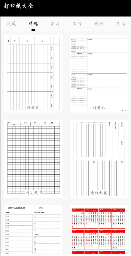 打印纸大全每一个模板都是超清版本,打印出来清晰自然,跟买的本子几乎没什么差别,能直接调用打印机进行打印,并支持调节打印机打印使用非常方便。