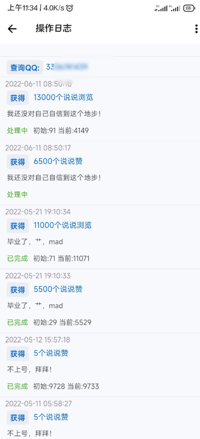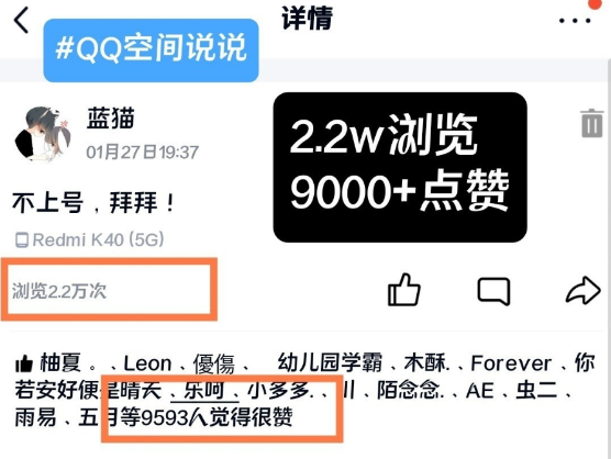 每天500说说赞+1000说说浏览