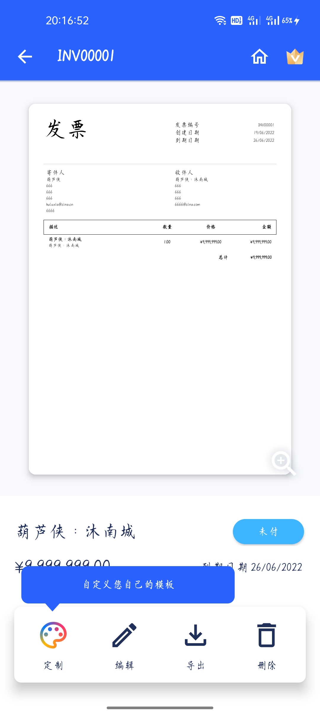 首页 > 软件仓库 > 发票制作器1.0对于个体经营者,小微企业主,承包商,自由职业者等等,是一个值得信赖并且简单专业的发票制作应用