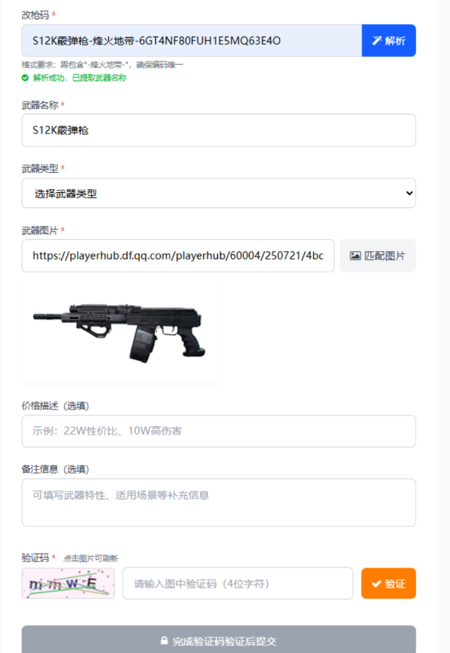 通过改枪码自动解析武器信息填充